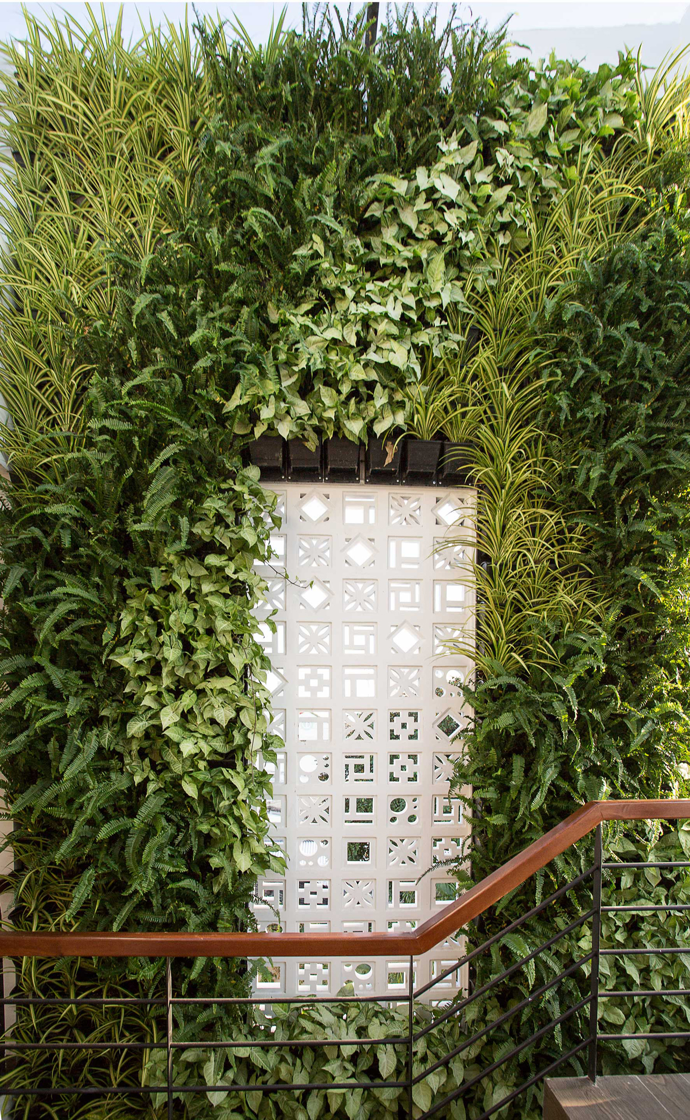 - Mỗi khu vườn đứng là một dàn khung sắt, liên kết những chậu cây nhỏ và có một hệ thống tưới nước tự động. Dù ở không gian nào trong nhà, gia chủ đều có thể cảm nhận được sự xanh mát do các khu vườn này mang lại.