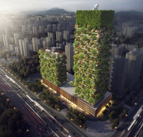 - “Rừng thẳng đứng” đầu tiên tại châu Á đang trong quá trình thi công tại thành phố Nam Kinh, tỉnh Giang Tô, dự kiến hoàn thành vào cuối năm 2019. Thực chất đây là hai tòa tháp với chiều cao gần 200 m và 108 m với hàng trăm cây lớn và cây bụi. Nó được kỳ vọng sẽ góp phần giải quyết cuộc khủng hoảng ô nhiễm ở Trung Quốc.
